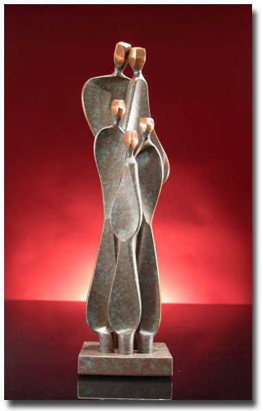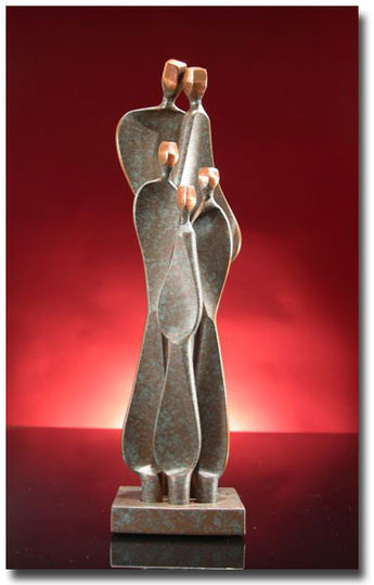 Family w/Three Children features two adults with three children and is available in two metal choices and in 6 sizes. (Shown in Bronze/Copper)