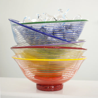 Spiral Wrap Small Footed Bowl is 7" in Diameter x 3" High. Bowls are Available in Five Colorways. When Ordering, Foot Color is Listed First.