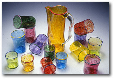 Transparent Wonkie Jimmie is Available in Tumbler 5.5", DOF (Double Old Fashion) 4", Juice 3", Carafe 12", Pitcher 12" & Bowl 12" Diameter. All glassware is available in 8 colors combinations.