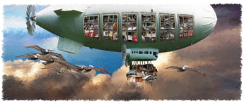 Blimp Town features a huge blimp with towns inside of them where people could live. Print is available in various sizes and options