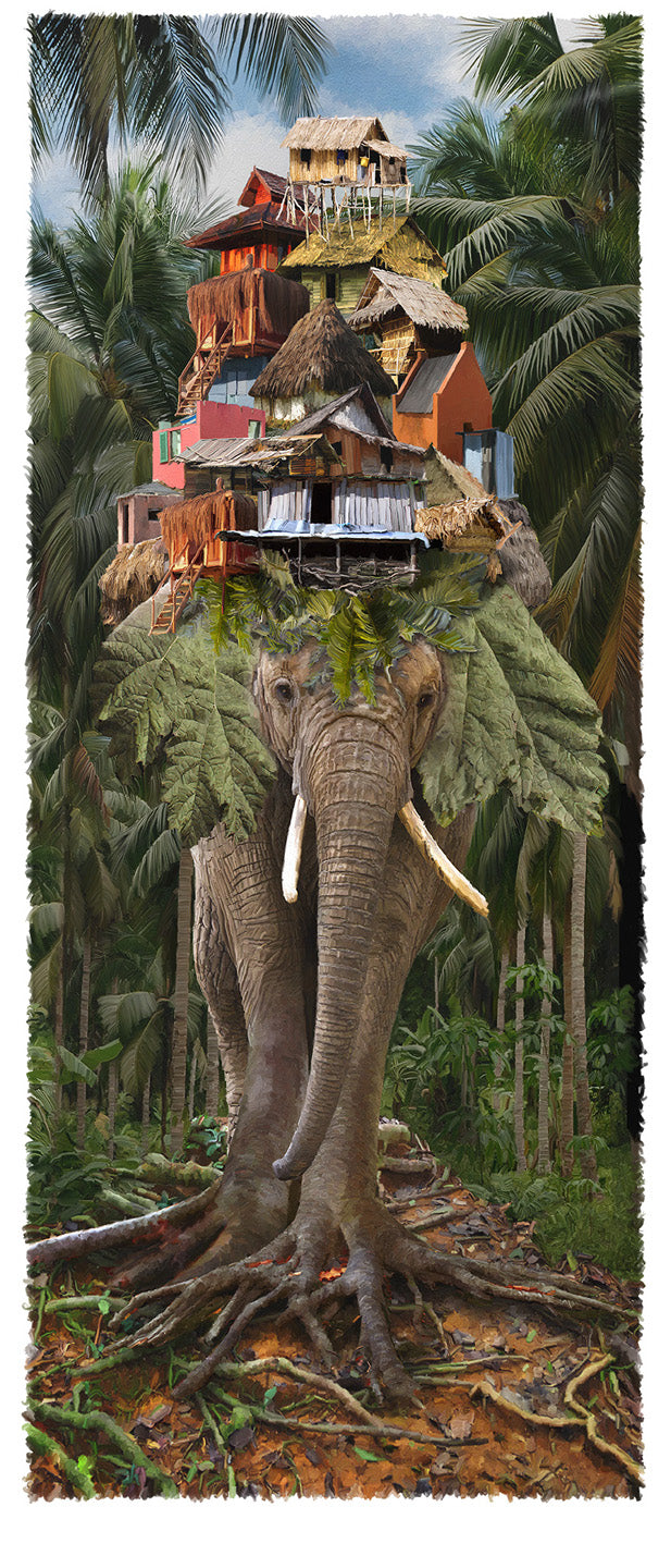 Elephant Town features a majestic elephant as he becomes one with the earth while maintaining his dignity and regal bearing. Print is available in various sizes and options