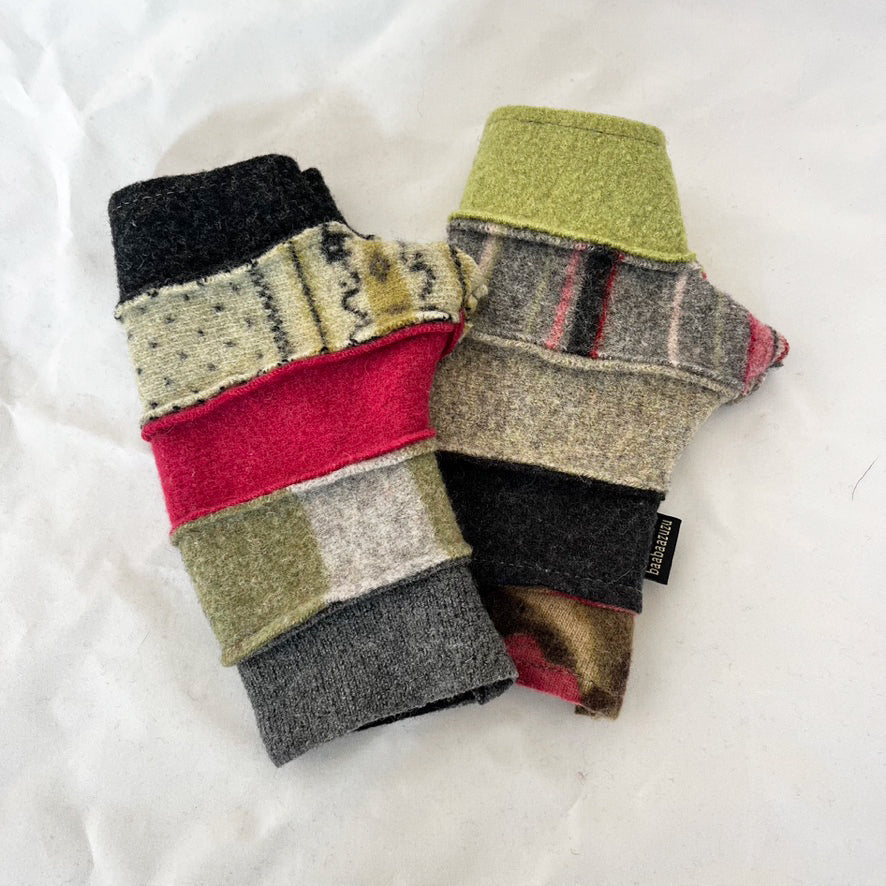 baabaaZuzu Fingerless Gloves in dark muted colors are made from Vintage Wool w/Soft Fleece Interior. One of a kind.