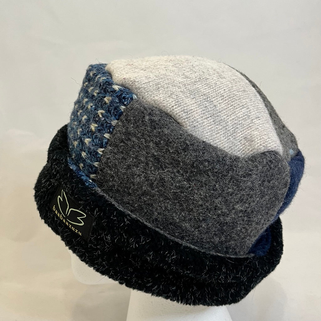 Rolled Pillbox Hat, made using Vintage Wool and soft Berber Fleece Lined. One of a Kind!