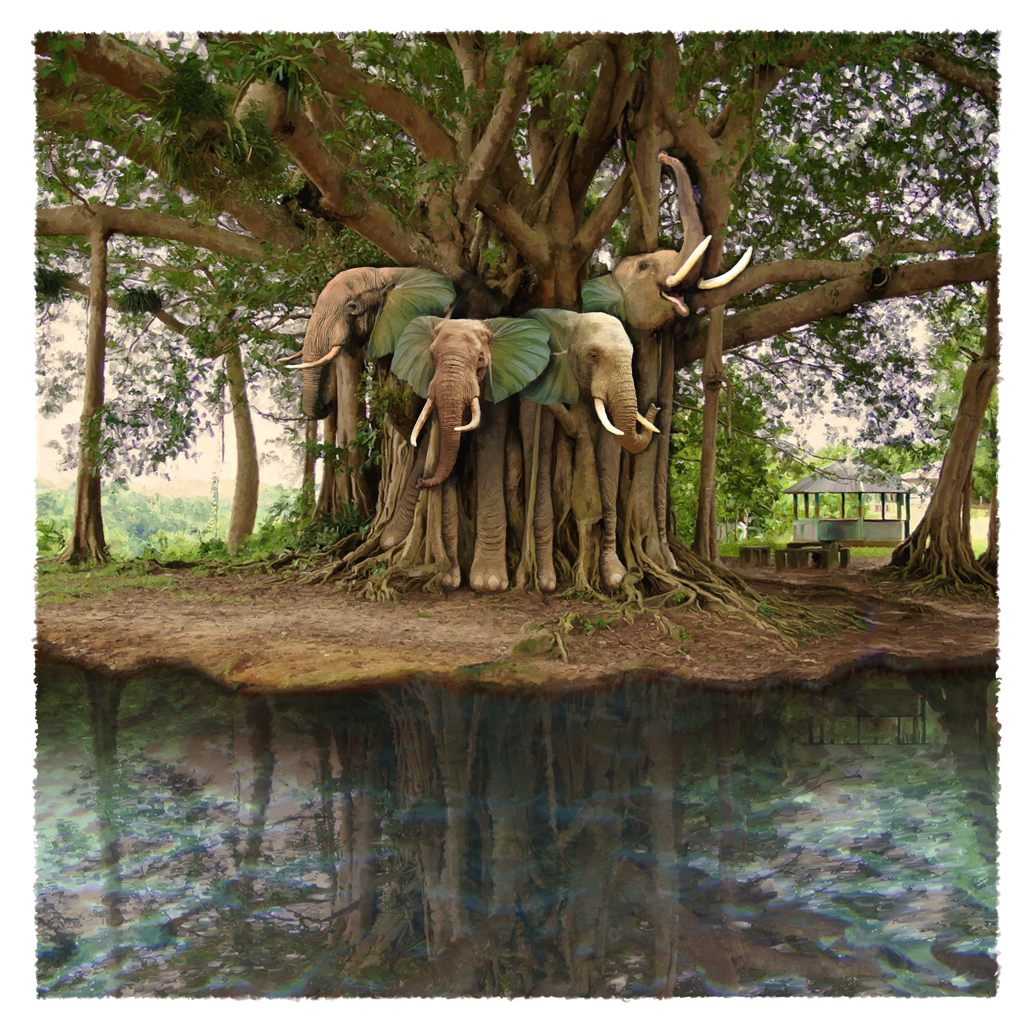 Lost Elephants! Are they lost or are they simply adapting to a rapidly changing climate. Print is available in various sizes, on Watercolor Paper or Canvas, framed or unframed.