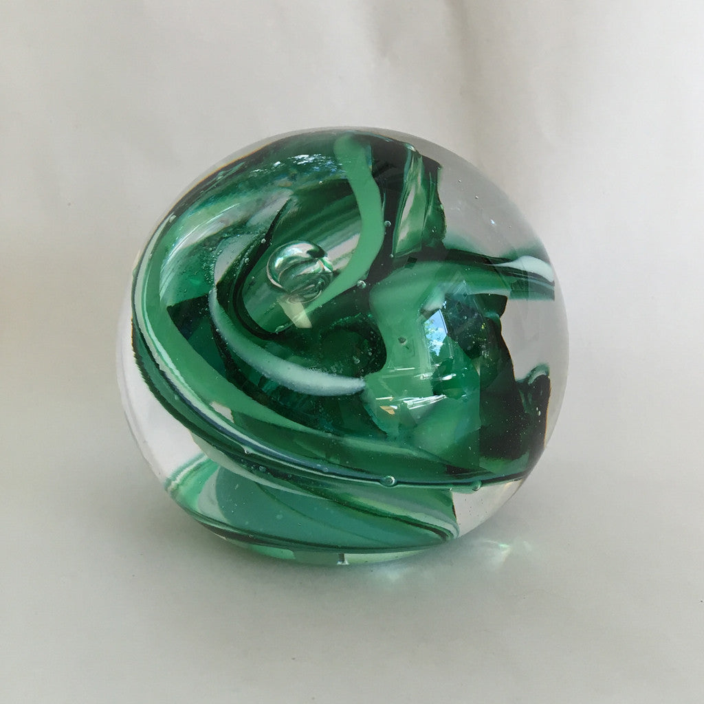 Green Marble Paperweight features ribbons of deep evergreen with soft green. Measures 3" in diameter.