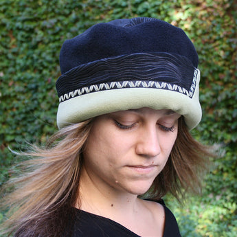 Wavy-Top Hat Features Windpro Fleece with Ultrasuede Design and Ribbon Trim. Available in Large.